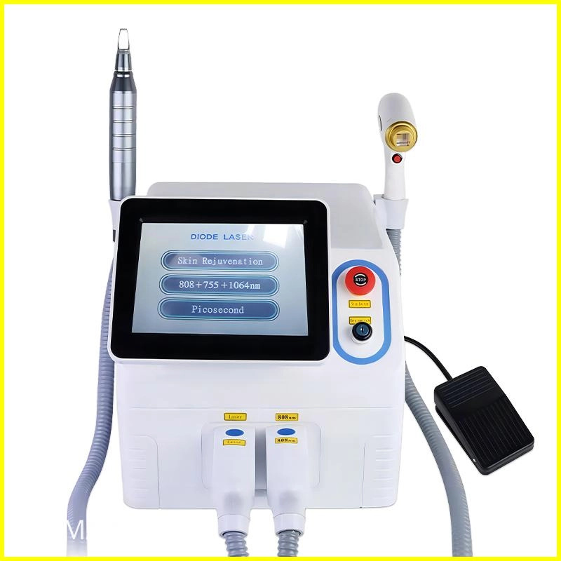 Our 2-in-1 Diode Laser + Picosecond Laser Machine combines advanced 808nm diode laser technology with powerful picosecond laser functions, making it an all-in-one solution for professional beauty clinics and salons. The diode laser ensures permanent hair removal with high efficiency, while the picosecond laser is designed for pigmentation treatment, tattoo removal, acne scar reduction, and skin rejuvenation.