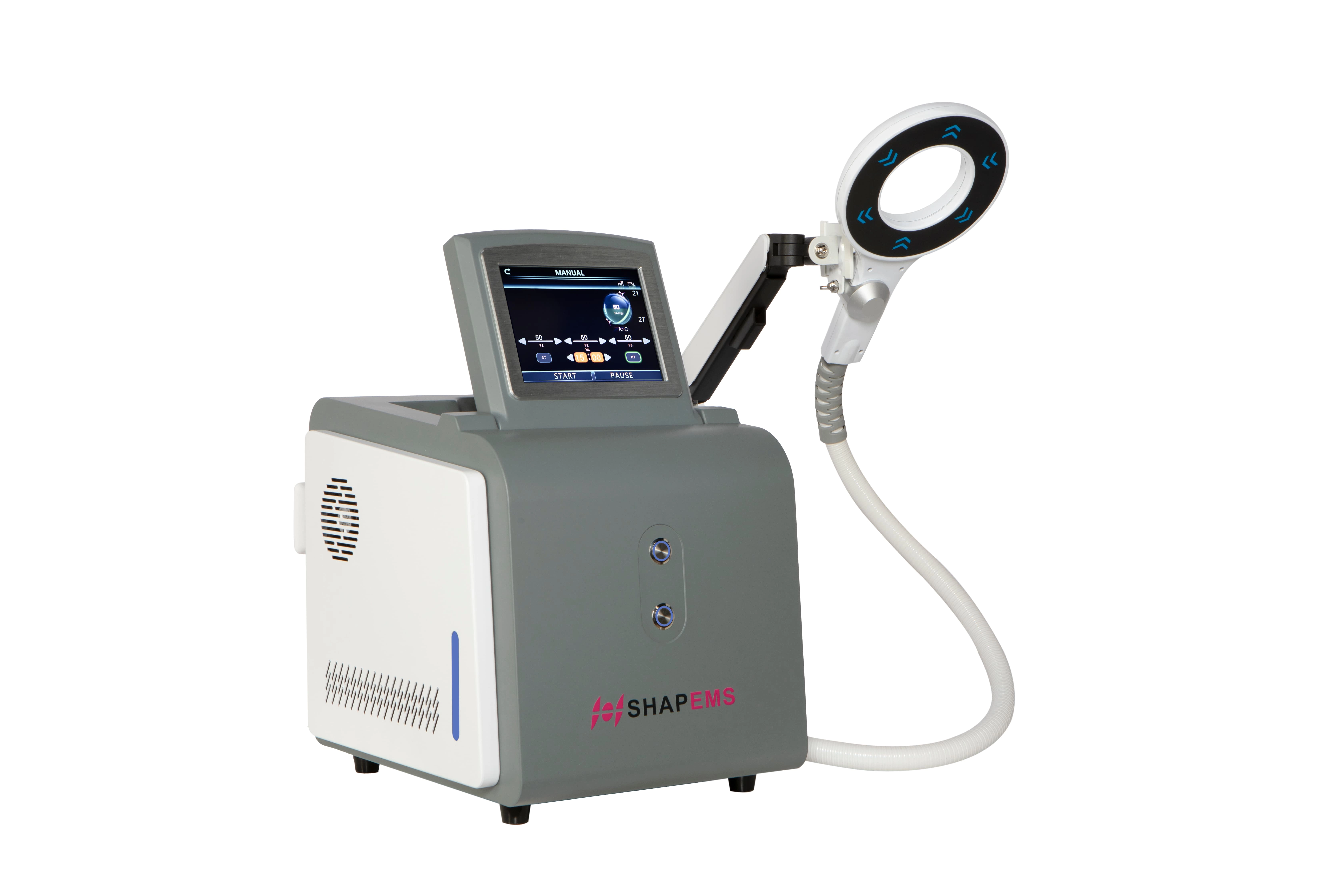 The SHAPEMS Pro is a cutting-edge, professional-grade body contouring system designed to meet the high demands of B2B aesthetic and wellness clinics. This floor-standing unit combines advanced High-Intensity Magnetic Therapy (HMT), Electrical Muscle Stimulation (EMS), and Radio Frequency (RF) technologies to deliver a powerful "3-in-1" solution.